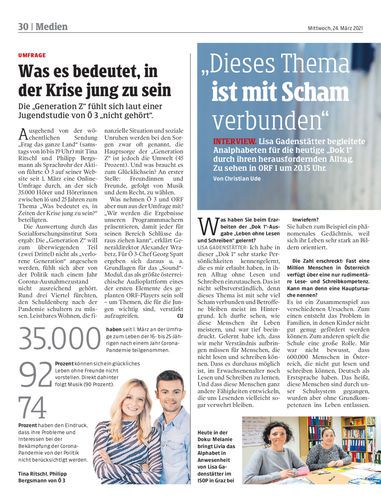 Lisa Gadenstätter begleitete Analphabeten für die heutige „Dok 1“ durch ihren herausfordernden Alltag. Zu sehen in ORF 1 um 20.15 Uhr. Von Christian Ude