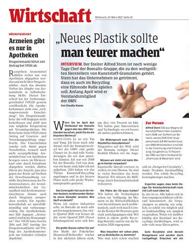 Der Steirer Alfred Stern ist noch wenige Tage Chef der Borealis-Gruppe, die zu den weltgrößten Herstellern von Kunststoff-Granulaten gehört. Stern hat das Unternehmen so getrimmt, dass es auch im Recycling eine führende Rolle spielen soll. Anfang April wird er Vorstandsmitglied der OMV. Von Claudia Haase