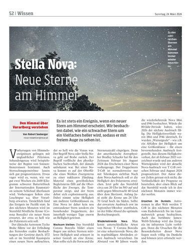 Es ist stets ein Ereignis, wenn ein neuer Stern am Himmel erscheint. Wir beobachten dabei, wie ein schwacher Stern um ein Vielfaches heller wird, sodass er mit freiem Auge zu sehen ist.