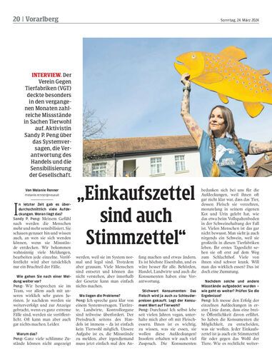 Interview. Der Verein Gegen Tierfabriken (VGT) deckte besonders in den vergangenen Monaten zahlreiche Missstände in Sachen Tierwohl auf. Aktivistin Sandy P. Peng über das Systemversagen, die Verantwortung des Handels und die Sensibilisierung der Gesellschaft.