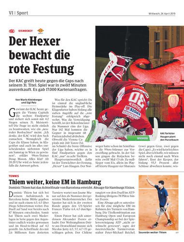 Der KAC greift heute gegen die Caps nach seinem 31. Titel. Spiel war in zwölf Minuten ausverkauft. Es gab 17.000 Kartenanfragen.