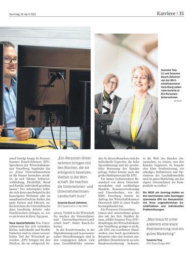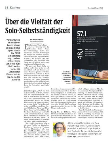 Vom Entwickler von Fotoboxen bis zur Bodypainting-Spezialistin: Die NEUE am Sonntag zeigt in einer zehnteiligen Serie, wie bunt die Erwerbsformen in Vorarlbergs Kleinstbetrieben ausfallen können.