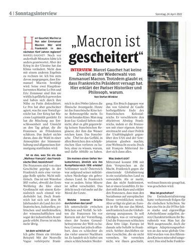 Interview. Marcel Gauchet hat keine Zweifel an der Wiederwahl von Emmanuel Macron. Trotzdem glaubt er, dass Frankreichs Präsident versagt hat. Hier erklärt der Pariser Historiker und Philosoph, warum. Von Stefan Winkler