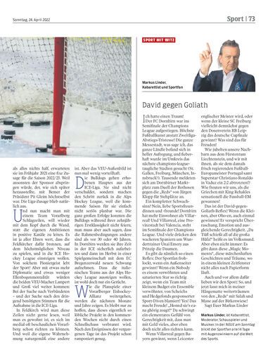 Essay. Gedanken über das heimische Eishockey nach Dornbirns Ausstieg aus der ICE-Liga. Eine Bewertung der Hauruck-Aktion „Team Vorarlberg“. Für eine Allianz braucht es nicht zuletzt von der VEU mehr Geduld, mehr Diplomatie und weniger Ellenbogenmentalität.