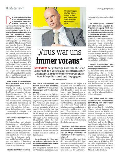 Der gebürtige Kärntner Christian Lagger hat den Vorsitz aller österreichischen Ordensspitäler übernommen: ein Gespräch über Pflege-Notstand und Impfgegner. Von Didi Hubmann