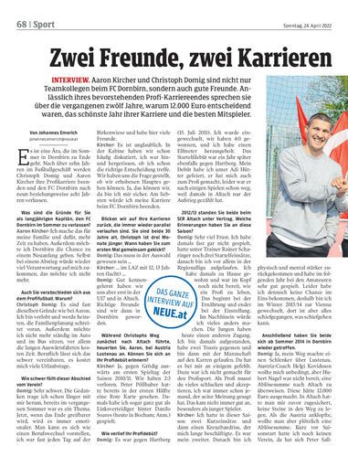 Interview. Aaron Kircher und Christoph Domig sind nicht nur Teamkollegen beim FC Dornbirn, sondern auch gute Freunde. Anlässlich ihres bevorstehenden Profi-Karriereendes sprechen sie über die vergangenen zwölf Jahre, warum 12.000 Euro entscheidend waren, das schönste Jahr ihrer Karriere und die besten Mitspieler.