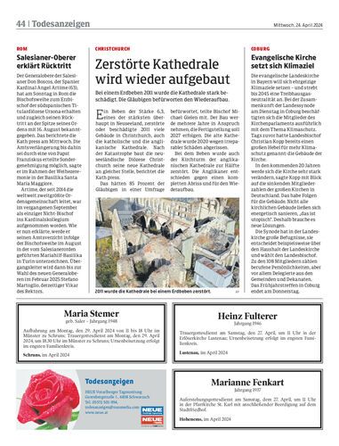Bei einem Erdbeben 2011 wurde die Kathedrale stark beschädigt. Die Gläubigen befürworten den Wiederaufbau.