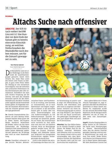 Analyse. Der SCR Altach verliert bei BW Linz mit 1:2. Vier Runden vor dem Ende der Saison gibt es bereits eine erste Einschätzung, an welchen Stellschrauben die Rheindörfler noch drehen müssen, um für die Zukunft gewappnet zu sein.