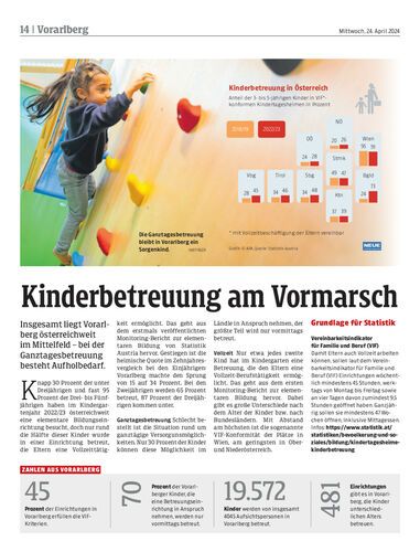 Insgesamt liegt Vorarlberg österreichweit im Mittelfeld – bei der Ganztagesbetreuung besteht Aufholbedarf.