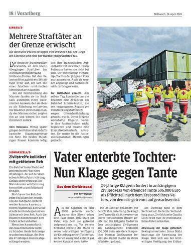24-jährige Klägerin fordert in anhängigem Zivilprozess von erbender Tante 506.000 Euro als Pflichtteil nach dem Krebstod ihres Vaters, von dem sie getrennt aufgewachsen ist.