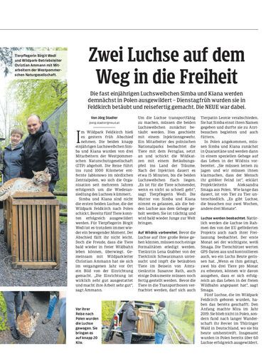 Die fast einjährigen Luchsweibchen Simba und Kiana werden demnächst in Polen ausgewildert – Dienstagfrüh wurden sie in Feldkirch betäubt und reisefertig gemacht. Die NEUE war dabei.