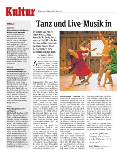 In einem 550 Jahre alten Haus, „Hägi Wendls“ in Zwischenwasser, lädt Ursula Sabatin am Wochenende zu ihrer neuen Tanzperformance, eine Echtzeitkomposition.