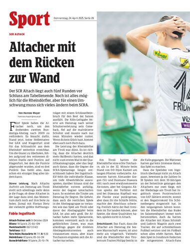 Der SCR Altach liegt auch fünf Runden vor Schluss am Tabellenende. Noch ist alles möglich für die Rheindörfler, aber für einen Umschwung muss sich vieles ändern beim SCRA.
