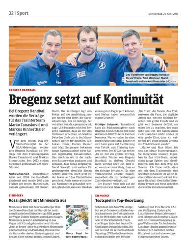 Bei Bregenz Handball wurden die Verträge für das Trainterteam Marko Tanasković und Markus Rinnerthaler verlängert.