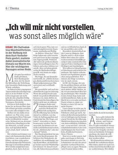 ESSAY. SN-Chefredakteur Manfred Perterer, in der Hofburg mit dem Kurt-Vorhofer-Preis geehrt, mahnte dabei journalistische Distanz zur Macht ein. Hier die wichtigsten Passagen seiner Rede.