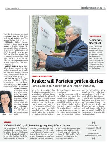 Hofer bat Nachfolgerin, Bauauftragsvergabe prüfen zu lassen