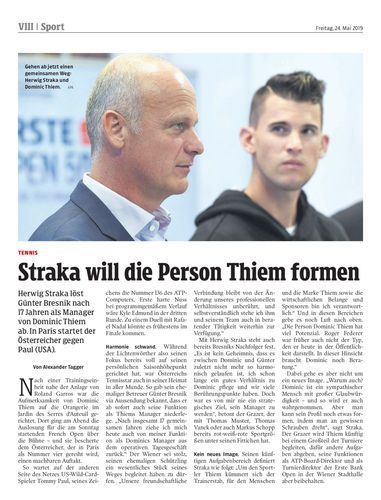 Herwig Straka löst Günter Bresnik nach 17 Jahren als Manager von Dominic Thiem ab. In Paris startet der Österreicher gegen Paul (USA).