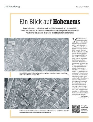 Landschaften verändern sich und bleiben doch oft erstaunlich konstant. Die NEUE stellt in einer Serie Vorarlberg in Luftaufnahmen vor, heute mit einem Blick auf den Flughafen Hohenems.