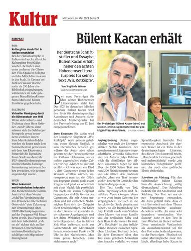 Der deutsche Schriftsteller und Essayist Bülent Kacan erhält heuer den achten Hohenemser Literaturpreis für seinen Text „Wir, Rotköpfe“.