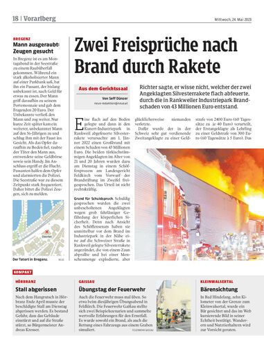 Richter sagte, er wisse nicht, welcher der zwei Angeklagten Silvesterrakete flach abfeuerte, durch die in Rankweiler Industriepark Brandschaden von 43 Millionen Euro entstand.