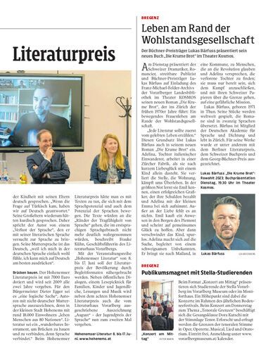Der Büchner-Preisträger Lukas Bärfuss präsentiert sein neues Buch „Die Krume Brot“ im Theater Kosmos.