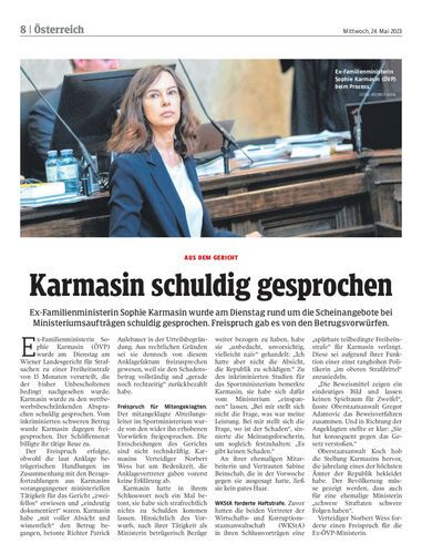 Ex-Familienministerin Sophie Karmasin wurde am Dienstag rund um die Scheinangebote bei Ministeriumsaufträgen schuldig gesprochen. Freispruch gab es von den Betrugsvorwürfen.