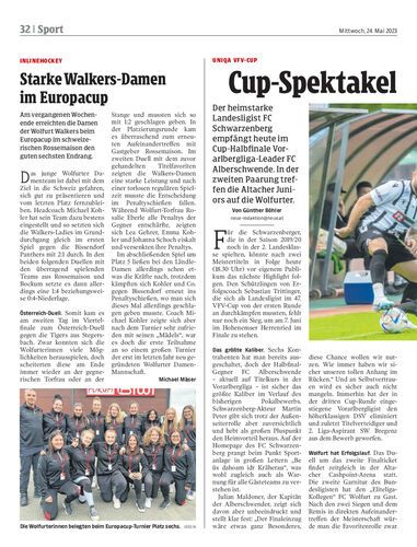 Der heimstarke Landesligist FC Schwarzenberg empfängt heute im Cup-Halbfinale Vorarlbergliga-Leader FC Alberschwende. In der zweiten Paarung treffen die Altacher Juniors auf die Wolfurter.