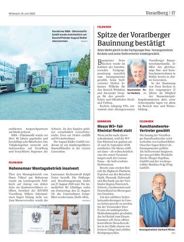 Alles bleibt gleich in der Fachgruppe Bau: Innungsmeister Keckeis und seine Stellvertreter wiedergewählt.
