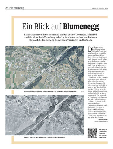Landschaften verändern sich und bleiben doch oft konstant. Die NEUE stellt in einer Serie Vorarlberg in Luftaufnahmen vor, heute mit einem Blick auf die Blumenegg-Gemeinden Thüringen und Ludesch.