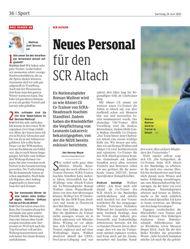 Ex-Nationalspieler Roman Wallner wird so wie Ahmet Cil Co-Trainer von SCRA-Headcoach Joachim Standfest. Zudem haben die Rheindörfler die Verpflichtung von Leonardo Lukacevic bekanntgegeben, von der die NEUE bereits exklusiv berichtete.