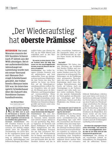 Interview. Vor zwei Monaten musste der SSV Dornbirn Schoren nach 27 Jahren aus der WHA absteigen. Bei einer außerordentlichen Jahreshauptversammlung wurde nun ein neuer Vorstand mit Obmann Christoph Scheiderbauer gewählt, der früher bereits Obmann beim SSV war. Im Interview spricht Scheiderbauer über die Zukunft des Dornbirner Damenhandballvereins.
