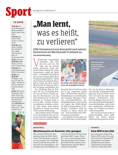 DTM-Vizemeister Lucas Auer greift nach seinem Horrorcrash am Wochenende in Holland an. Von Denise Maryodnig