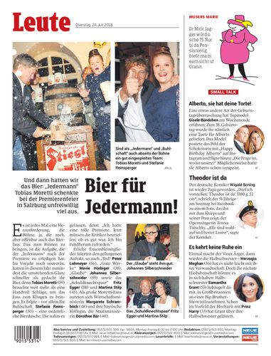 Und dann hatten wir das Bier: „Jedermann“ Tobias Moretti schenkte bei der Premierenfeier in Salzburg unfreiwillig viel aus.