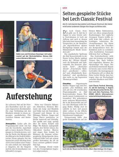 Am 31. Juli startet das siebte Lech Classic Festival. Als Solist wird unter anderem Sänger Ain Anger zu hören sein.