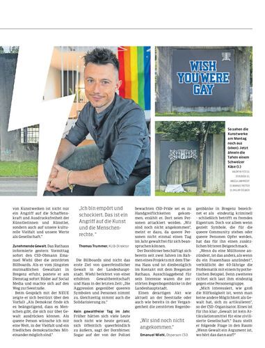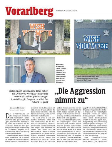 Bislang noch unbekannte Täter haben die „Wish you were gay“-Billboards von der aktuellen gleichnamigen Ausstellung in Bregenz zerstört. Der Schock ist groß.