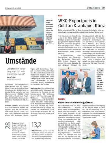 WKO-Exportpreis in Gold an Kranbauer Künz