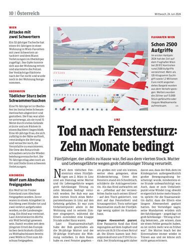 Tod nach Fenstersturz: Zehn Monate bedingt
