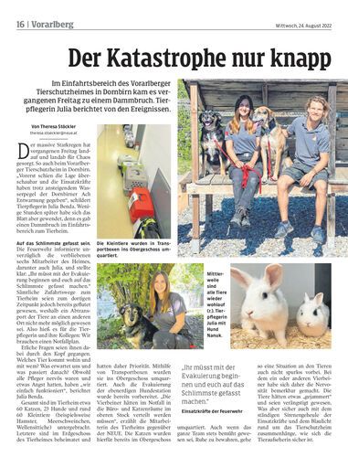 Im Einfahrtsbereich des Vorarlberger Tierschutzheimes in Dornbirn kam es vergangenen Freitag zu einem Dammbruch. Tierpflegerin Julia berichtet von den Ereignissen.