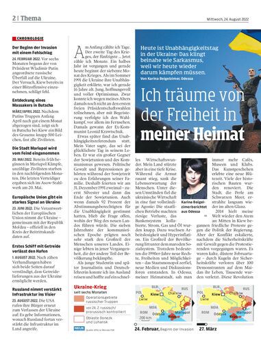 Heute ist Unabhängigkeitstag in der Ukraine: Das klingt fast wie Sarkasmus, weil wir heute wieder darum kämpfen müssen. Von Karina Beigelzimer, Odessa
