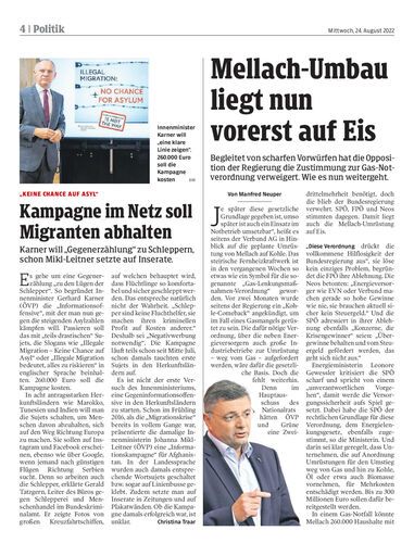 Karner will „Gegenerzählung“ zu Schleppern, schon Mikl-Leitner setzte auf Inserate.