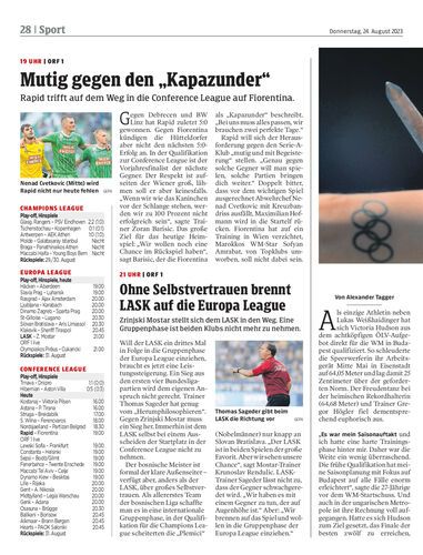 Rapid trifft auf dem Weg in die Conference League auf Fiorentina.
