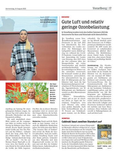 In Vorarlberg wurden trotz des heißen Sommers 2022 die Grenzwerte für Ozon und Feinstaub nicht überschritten.
