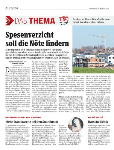 Mahnspesen und Verzugszinsen können temporär gestrichen werden, wenn Kreditnehmende mit variablen Immo-Krediten in Schwierigkeiten geraten. Sparzinsen sollen transparenter ausgewiesen werden. Ein Überblick.