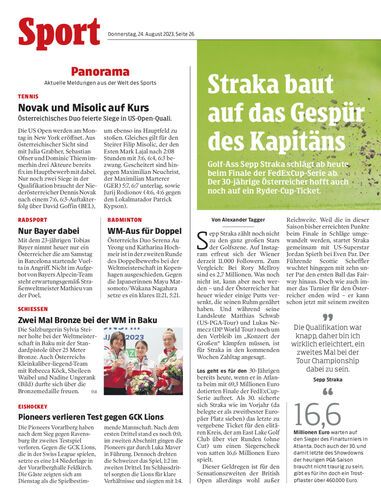 Golf-Ass Sepp Straka schlägt ab heute beim Finale der FedExCup-Serie ab. Der 30-jährige Österreicher hofft auch noch auf ein Ryder-Cup-Ticket.