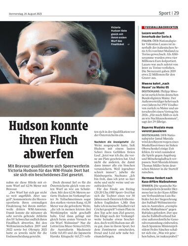 Mit Bravour qualifizierte sich Speerwerferin Victoria Hudson für das WM-Finale. Dort hat sie sich ein bescheidenes Ziel gesetzt.