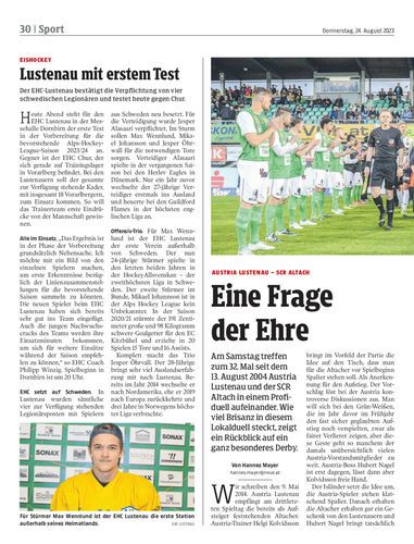 Der EHC-Lustenau bestätigt die Verpflichtung von vier schwedischen Legionären und testet heute gegen Chur.