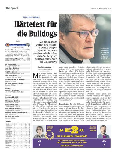 Auf die Bulldogs wartet eine herausfordernde Doppelspielrunde. Heute gastieren die Dornbirner in Salzburg, am Sonntag empfangen sie Meister KAC.