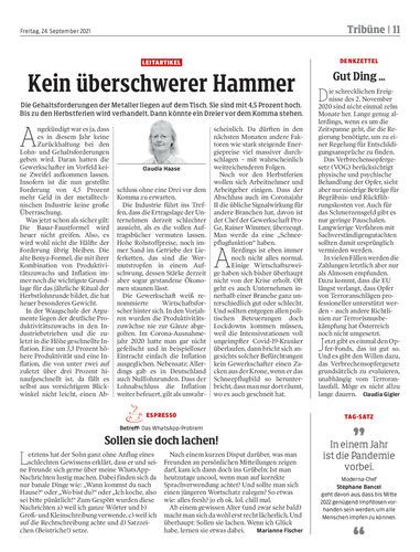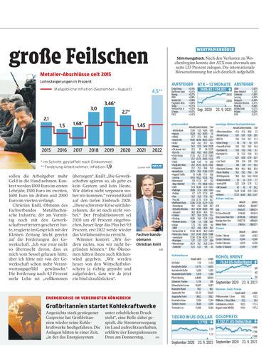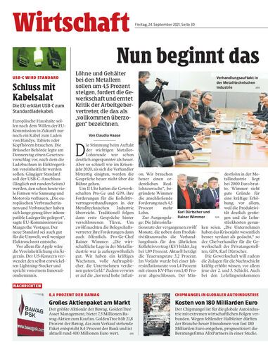 Die Gehaltsforderungen der Metaller liegen auf dem Tisch. Sie sind mit 4,5 Prozent hoch. Bis zu den Herbstferien wird verhandelt. Dann könnte ein Dreier vor dem Komma stehen.