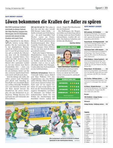 Der EHC Lustenau verliert erstmals in dieser Saison der Alps Hockey League ein Heimspiel. Der EC Kitzbühel nimmt mit einem 4:2 die Punkte mit nach Tirol.