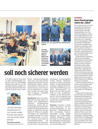 Polizei-Planstellen werden von 957 auf 1100 aufgestockt – neues Sicherheitszentrum in Feldkirch.